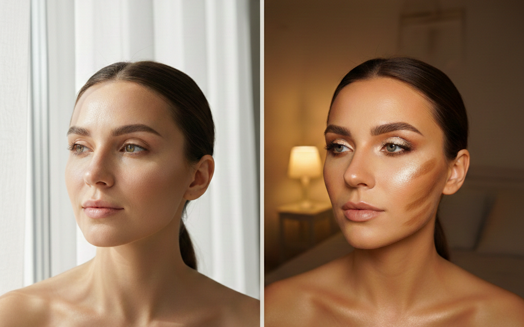 У кімнаті з теплим світлом (2700–3500 K) шкіра здається більш сяючою, а макіяж – насиченим. Але на вулиці холодніше світло робить ті ж відтінки сірими чи блідими. Холодне чи тепле світло для макіяжу – це вічний компроміс: тепле робить процес приємнішим, але холодне (або нейтральне) – точнішим.