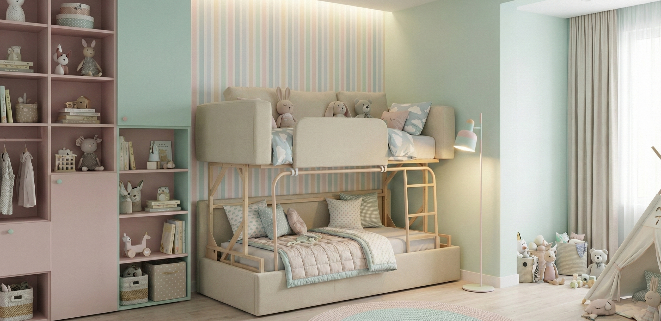 Зробіть ремонт один раз — і нехай ваша дитяча кімната змінюється лише разом зі смаками її власника, а не через застарілі меблі чи відірвані шпалери. Один розумний диван-трансформер у двоярусне ліжко — і питання «що робити через 10 років» зникає назавжди.
