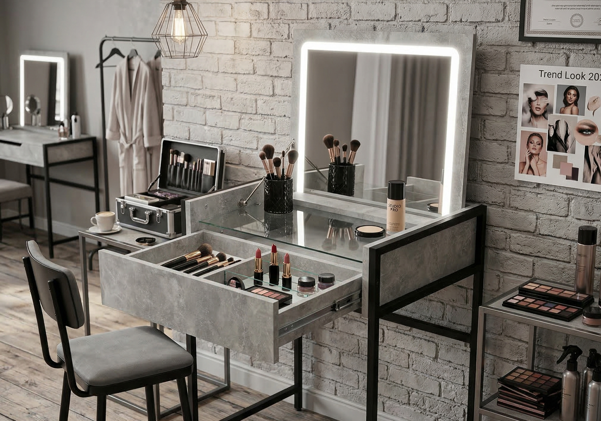 Серцем будь-якої студії є робоча поверхня майстра. Якщо ви шукаєте ідеальний варіант, то професійний стіл візажиста для маленької студії має відповідати кільком критичним критеріям: стійкість, легкість у догляді та наявність місць для зберігання косметики. Сьогодні великою популярністю користується стіл для макіяжу лофт вузький, оскільки цей стиль поєднує в собі лаконічність форм та неймовірну міцність. Металеві елементи додають конструкції надійності, а дерев’яні поверхні створюють необхідний затишок.
