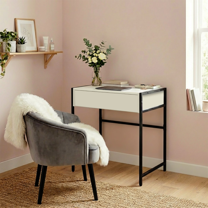 Цей гримерний стіл купити варто кожному. Модель має стільницю зі скла та одну висувну шухляду.
