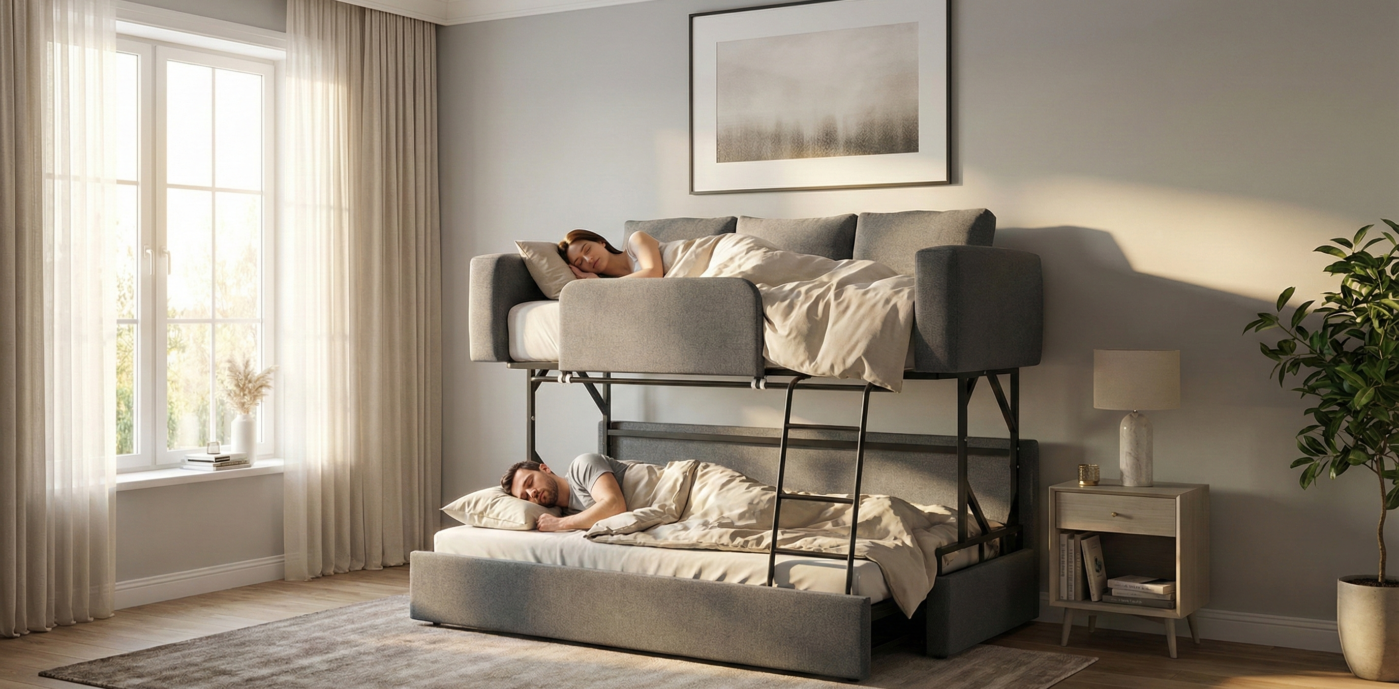 А еще двухъярусный диван-трансформер дает возможность иногда устраивать «ночь обменов»: сегодня ты сверху, завтра я. Это превращается в маленькую игру, которая добавляет легкости и юмора в отношения. Многие пары признаются: когда появилась возможность спать отдельно, желание спать вместе вернулось само собой — и стало гораздо ярче, чем в те времена, когда выбора не было совсем.