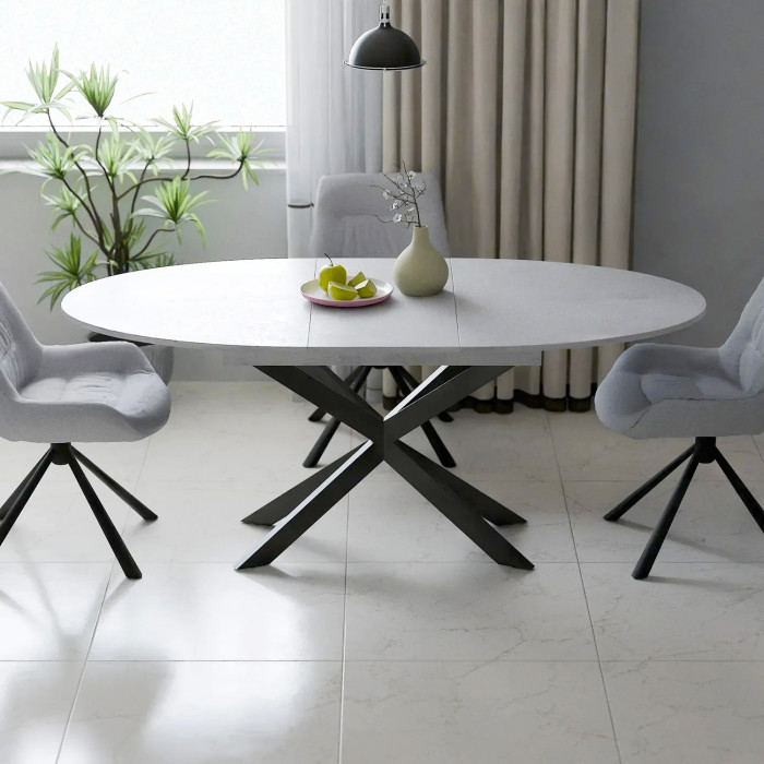 Обідній розсувний стіл Arakhna Oval  серце вашої гостинної оселі! Це не просто предмет інтер'єру, а справжній центр тяжіння вашої кухні чи вітальні. Завдяки овальній формі він виглядає витончено та безпечно (жодних гострих кутів), а надійна стільниця з ламінованого ДСП завтовшки 18 мм гарантує довговічність навіть при щоденному використанні. Головна перевага моделі  адаптивність. Для звичайної вечері вам вистачить компактних 140 см, але коли прийдуть гості, стіл легко трансформується у повноцінну обідню зону довжиною 180 см.